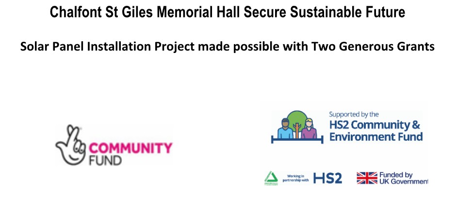 The Trustees of Chalfont St Giles Memorial Hall are delighted to announce that, thanks to two generous grants, they can proceed with their plan to install solar panels and battery storage as part of their long-term sustainability initiative.