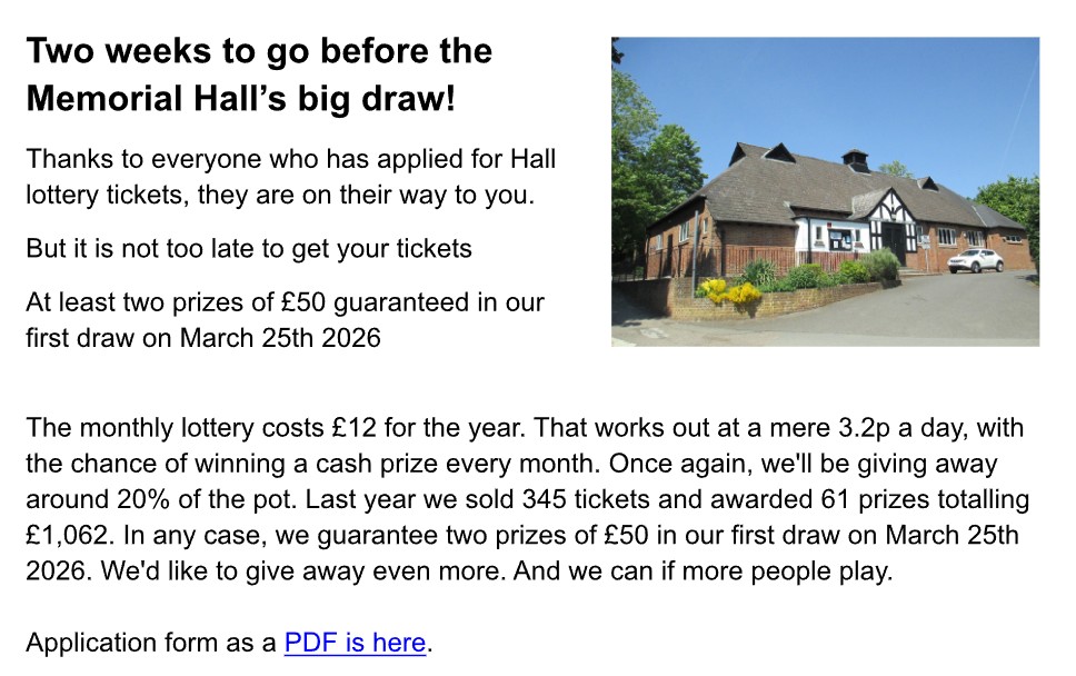 You are invited to the AGM to hear about the improvements we have made last year and our plans for the coming year, 2026. If you wish to propose a motion for discussion at the AGM, please advise the Hon. Secretary by Friday, 6th March 2026. Kenneth Huxham (Hon. Secretary) email: k.huxham@btinternet.com tel. 01494 872107